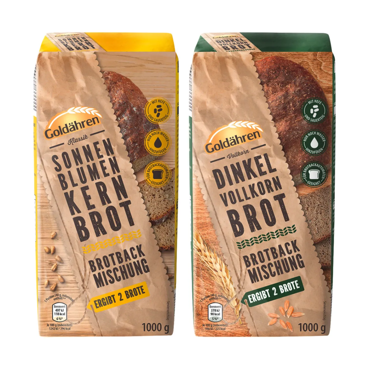 * Dinkelvollkornbrot (ergibt 2 Brote)