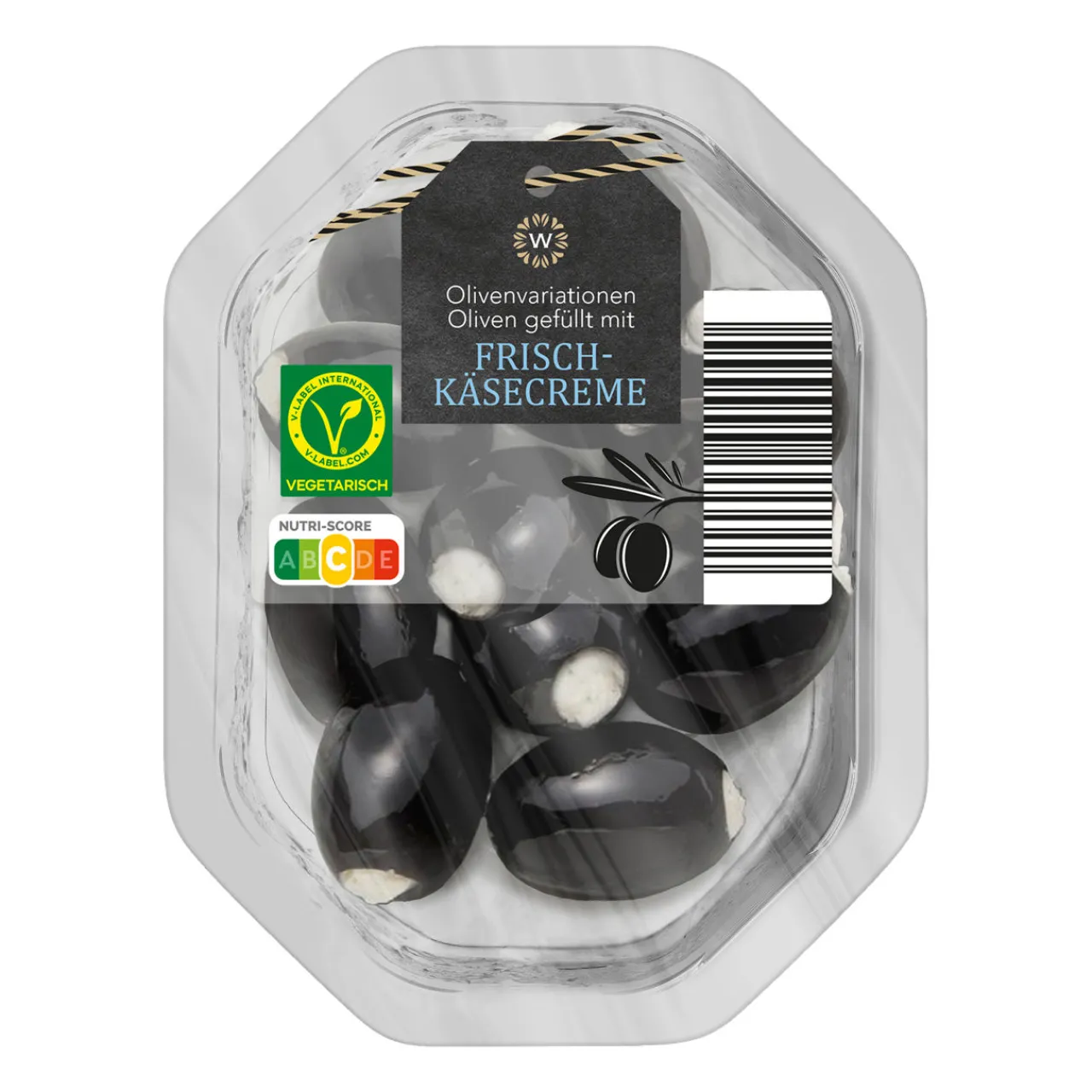 * Schwarze Oliven, gefüllt mit Frischkäsecreme